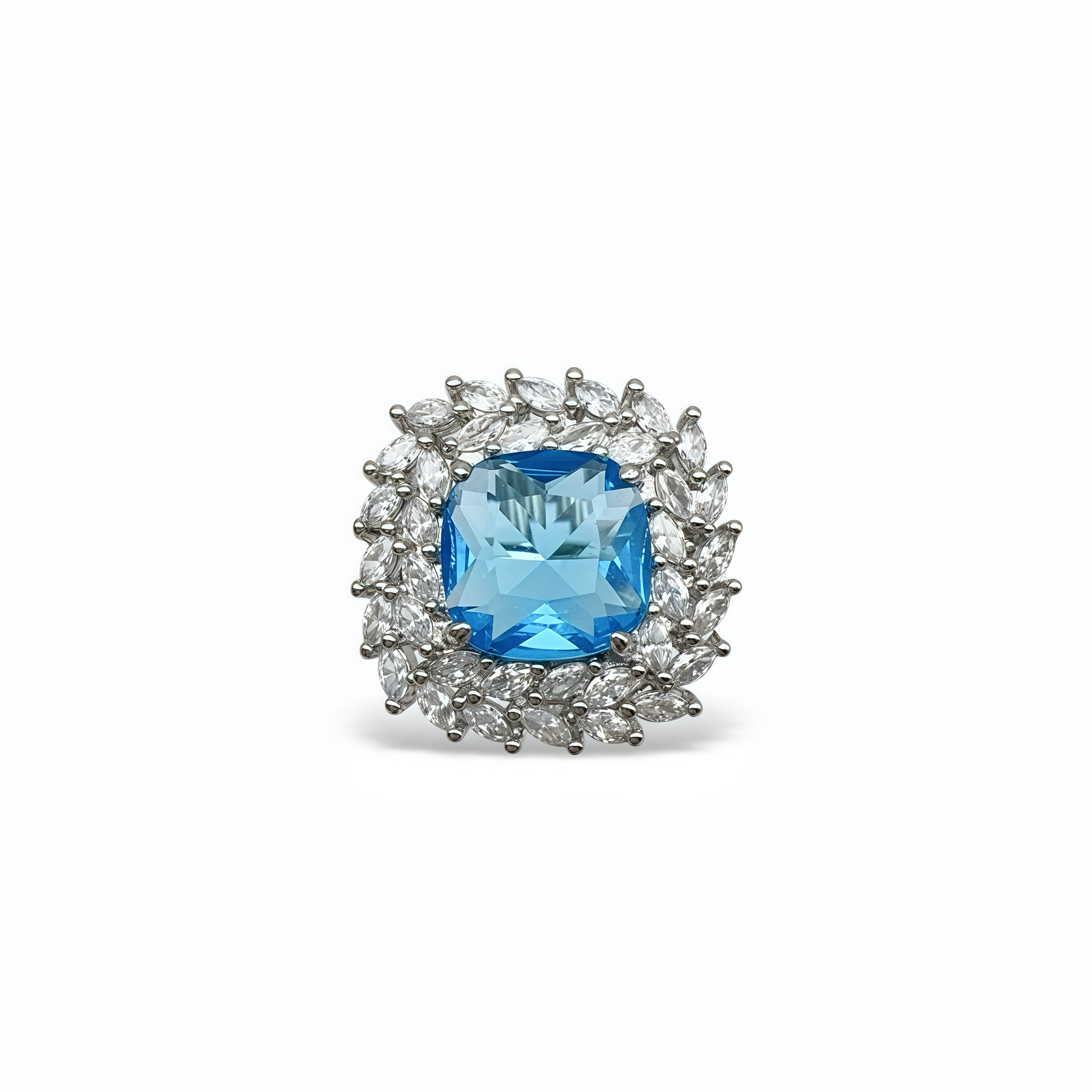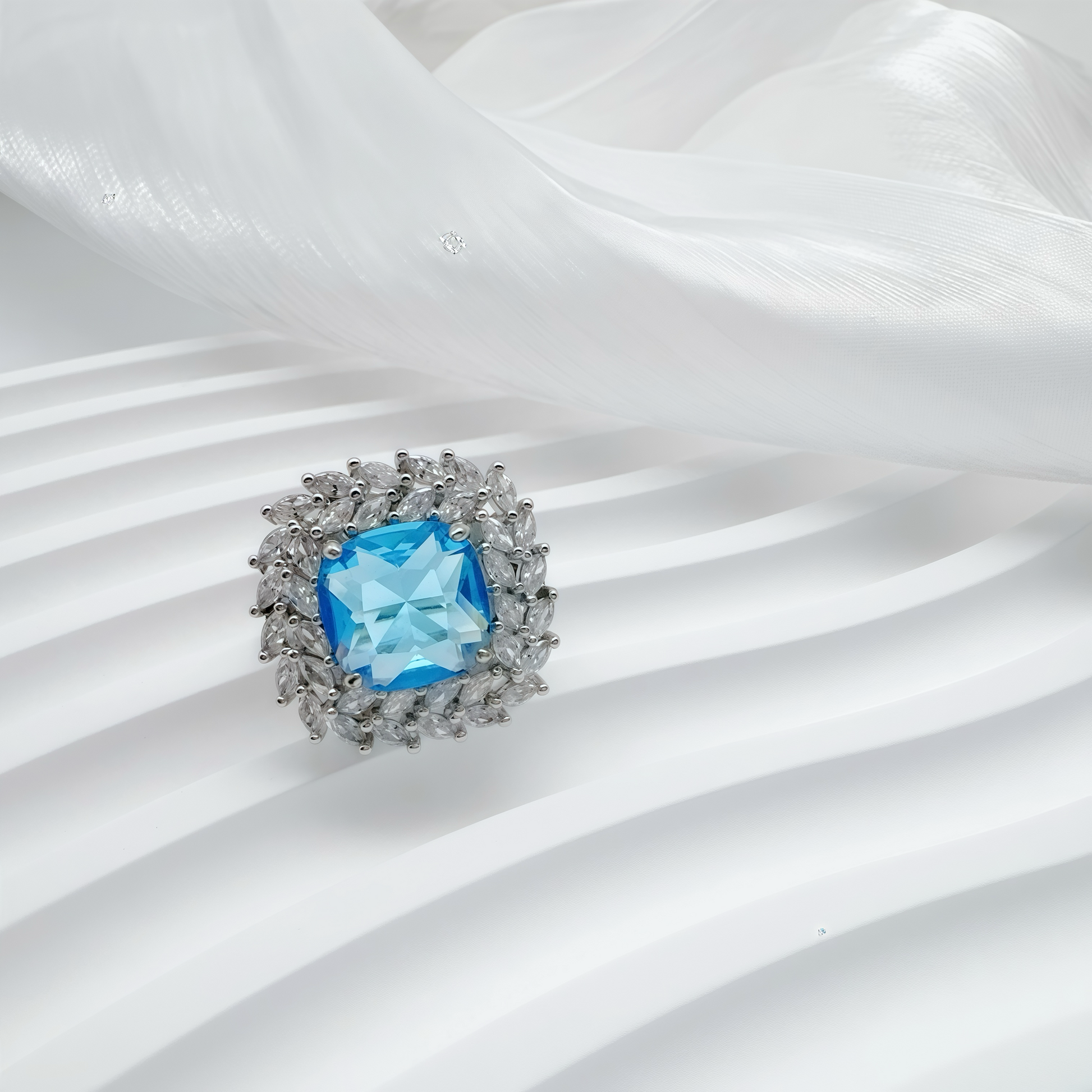- Material: White gold plating + zircon spinel